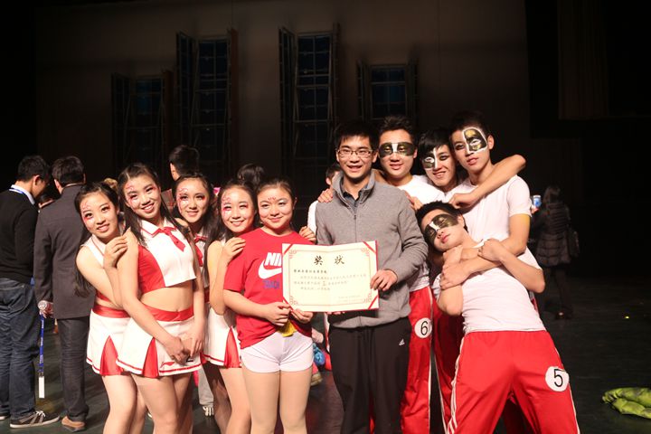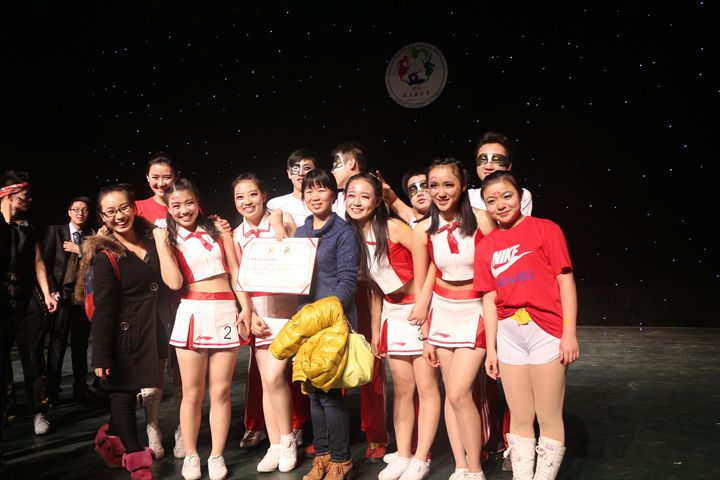 的健美操队由2014级的8位青春健儿组成:顾屿、范玖强、石越超、胡廷琼、李思雯、叶津含、于宇潇。两个月来,大家不怕苦、不怕累,在领队的带领下坚持训练。一遍遍的重复那既简单又复杂的动作,只为做到最完美,一次次的排练,只为在舞台上展现最完美的自己。终于,他们走到了这里。