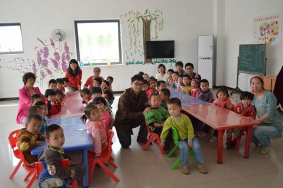 28日上午,社会实践团到小镇幼儿园开展支教活动,到达到幼儿园后,队员们便被孩子们阳光的笑容所感染,很快的融入到孩子们当中。队员们教孩子们唱《让我们荡起双桨》;给他们讲述北海公园及北京的故事;组织他们玩游戏,在游戏中体会团结互助的重要。