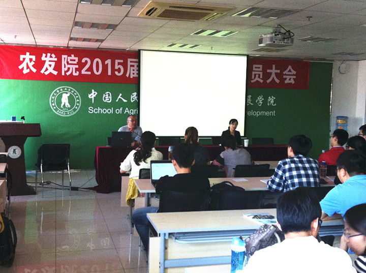会议开始后,孔祥智老师先对2015届毕业生的求职进行鼓励,并祝愿他们都能找到满意的工作。随后,唐传英老师作为主讲,为同学们讲解了往届毕业生的主要就业去向,详细介绍了当前的就业形势、就业政策及就业相关准备,并对签约流程、违约政策、户口档案的处理和手续办理问题做了具体说明。唐老师也通过各种实例向同学们强调了求职过程中的技巧和注意事项。最后,同学们针对自身情况与唐传英老师进行了咨询互动。