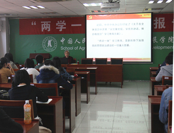 党委副书记、院党校副校长康琳老师主持,学院党校学员及其他学生党员认真聆听。