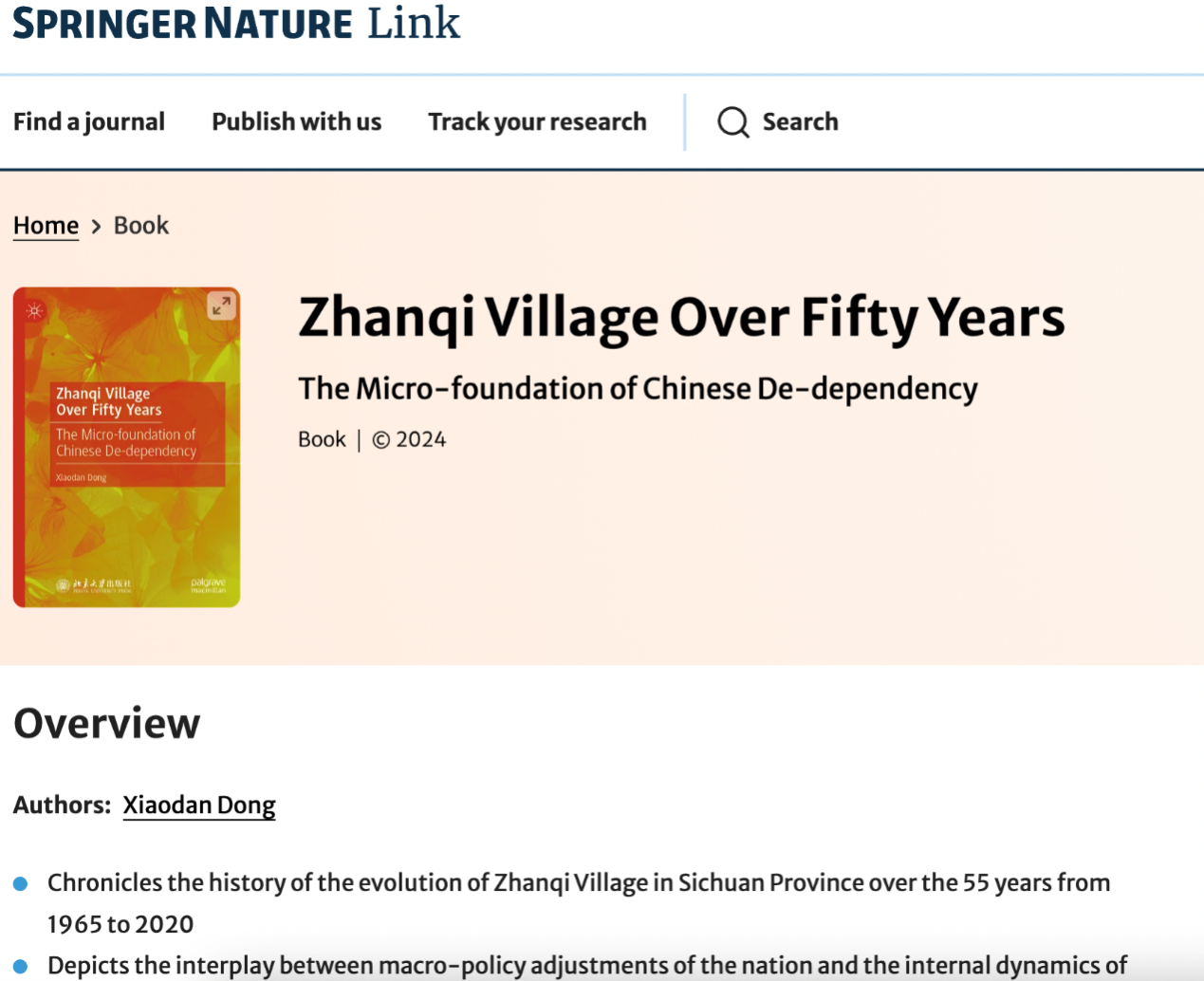 目前,《Zhanqi Village Over Fifty Years》已通过亚马逊、施普林格等平台面向全球读者发售,电子书与纸质版同步上线,并已被澳大利亚国家图书馆及最大的经济学专用书目数据库IDEAS等平台收录。