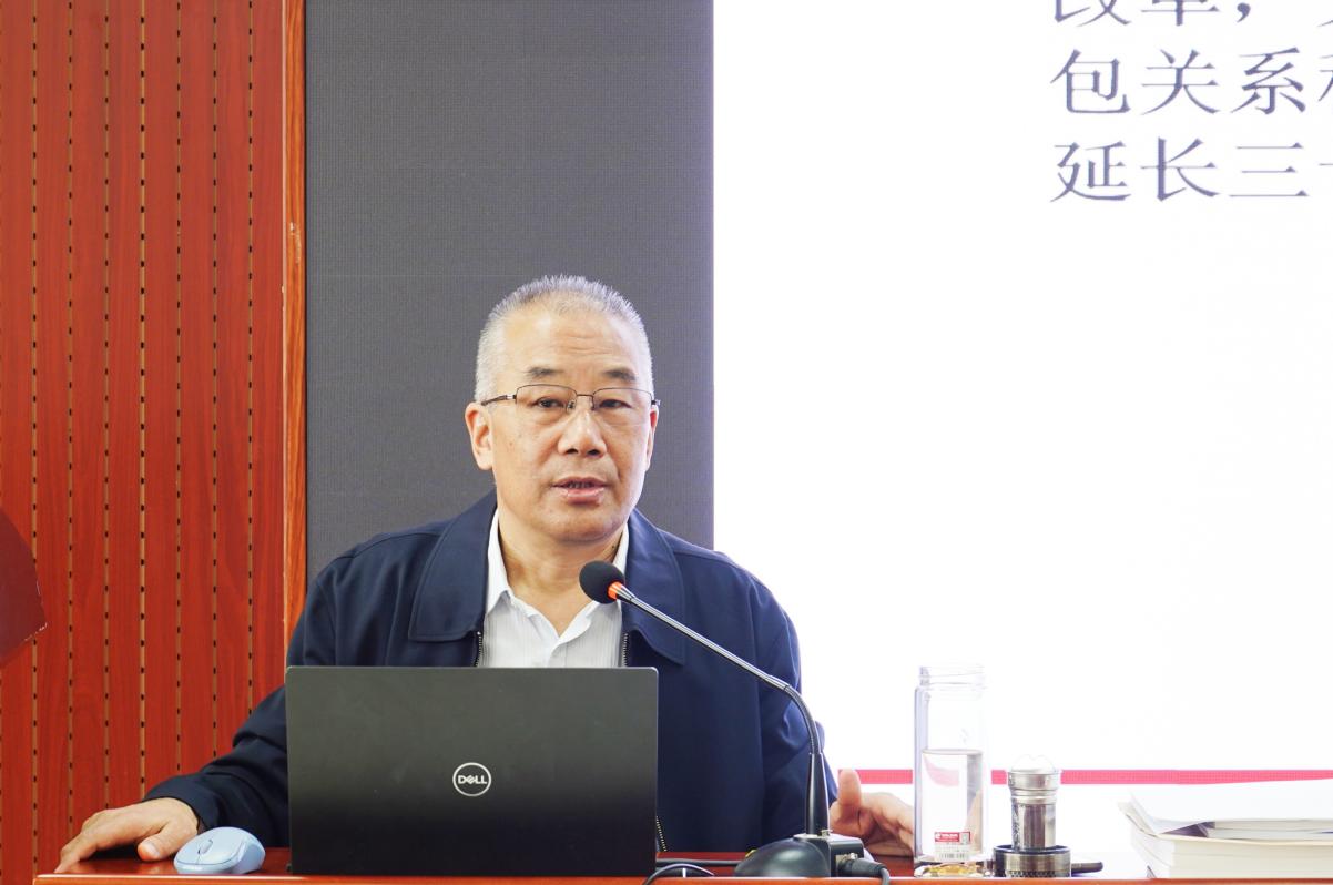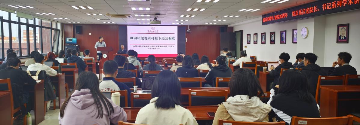 建系70周年/建院20周年院庆系庆老院长、老书记系列学术讲座第三讲在明德主楼930成功举办。学院原党委书记孔祥智教授作了题为“巩固和完善农村基本经营制度”的学术讲座。学院党委书记曾丙健主持讲座。