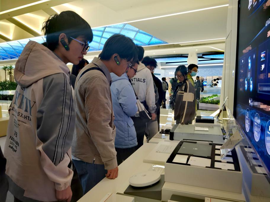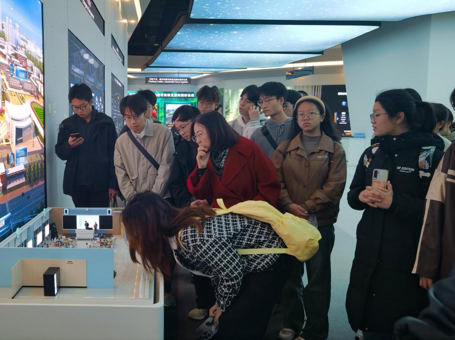 华为北京会展中心是华为在京设立的重要展示平台,共有四大展区和多个展岛,涵盖了华为绝大部分产品线、事业群和业务单元的领先产品和解决方案。通过工作人员的讲解,同学们了解了华为依托数字技术开展的基础设施建设,以及数字技术赋能政府管理、城市运行、学校教育教学等的解决方案;了解了华为在人工智能、虚拟现实、云计算、物联网、5G等领域的前沿技术成果。同学们亦通过体验华为智能云会议室以及一系列性能卓越的电子产品,深刻感受到了科技带来的高效与便捷。