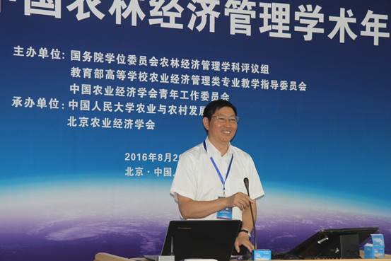 2016-08-228月22日上午11时,2016中国农林经济管理学术年会第二场学术前沿报告会与闭幕式在高清av 明德法学楼0101教室举行。报告会与闭幕式由中国农业经济学会青年工作委员会主任委员、高清av 苏州校区党委书记、中法学院和国际学院院长、高清av 教授朱信凯主持。