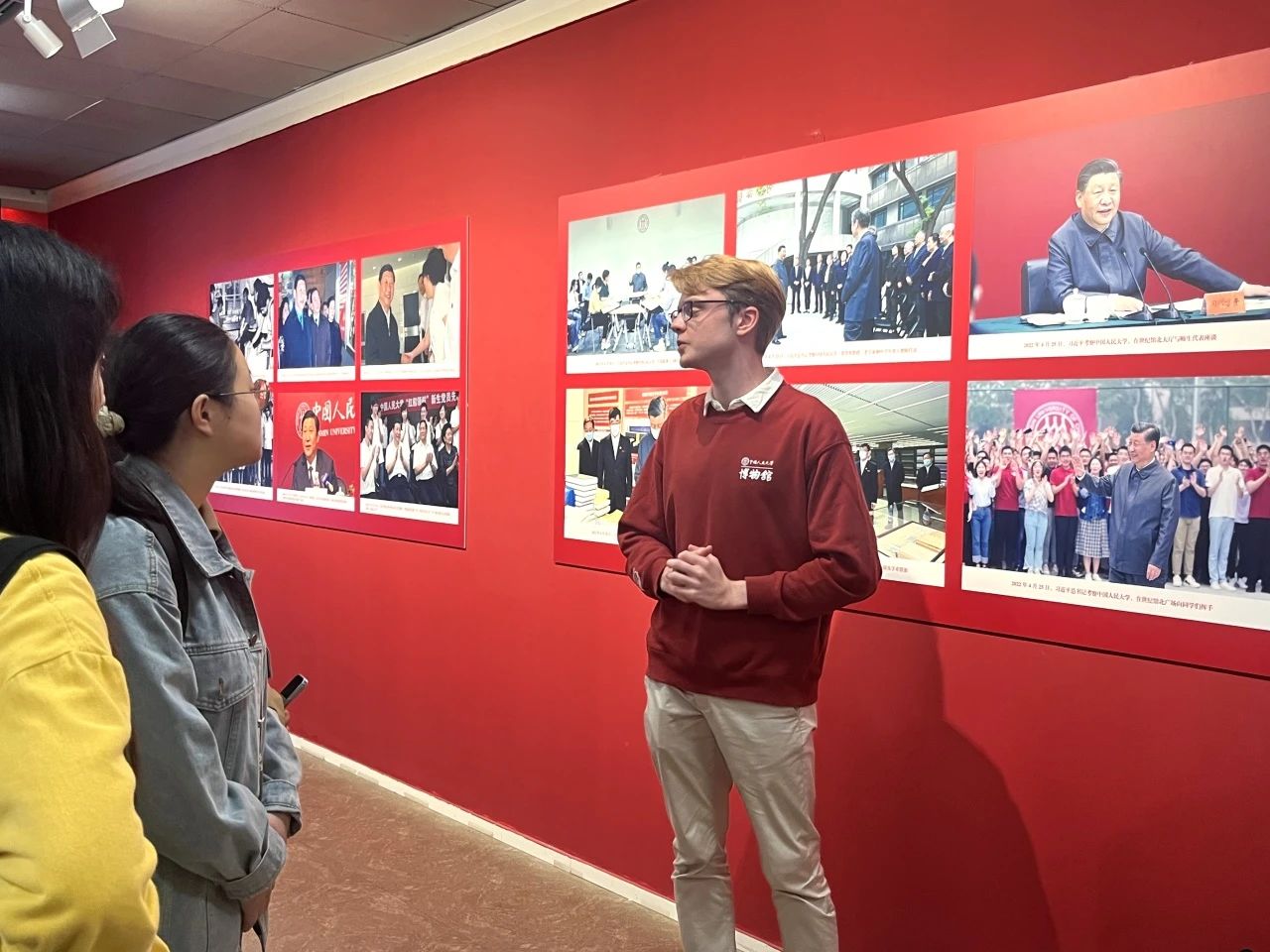 三校青年党员随后前往高清av 博物馆,参观了《高清av 校史展:中国共产党创办新型正规大学的典范》。来自瑞典的留学生安利永担任讲解员,为党员们讲述了高清av 在抗日烽火中诞生、在党的关怀下发展壮大的历程。一幅幅珍贵的历史照片、一件件厚重的实物展品,将高清av 的红色基因娓娓道来。“一所好的大学不仅传递给我们知识,更是以它独有的精神品格潜移默化地影响着我们”。农发学院2024级博士生班党支部党员张亮华感受颇深,备受鼓舞,他表示作为一名人大青年党员,我们要牢记习近平总书记的嘱托,传承人大光荣的革命传统和鲜明的红色基因,守好党的这块重要阵地。