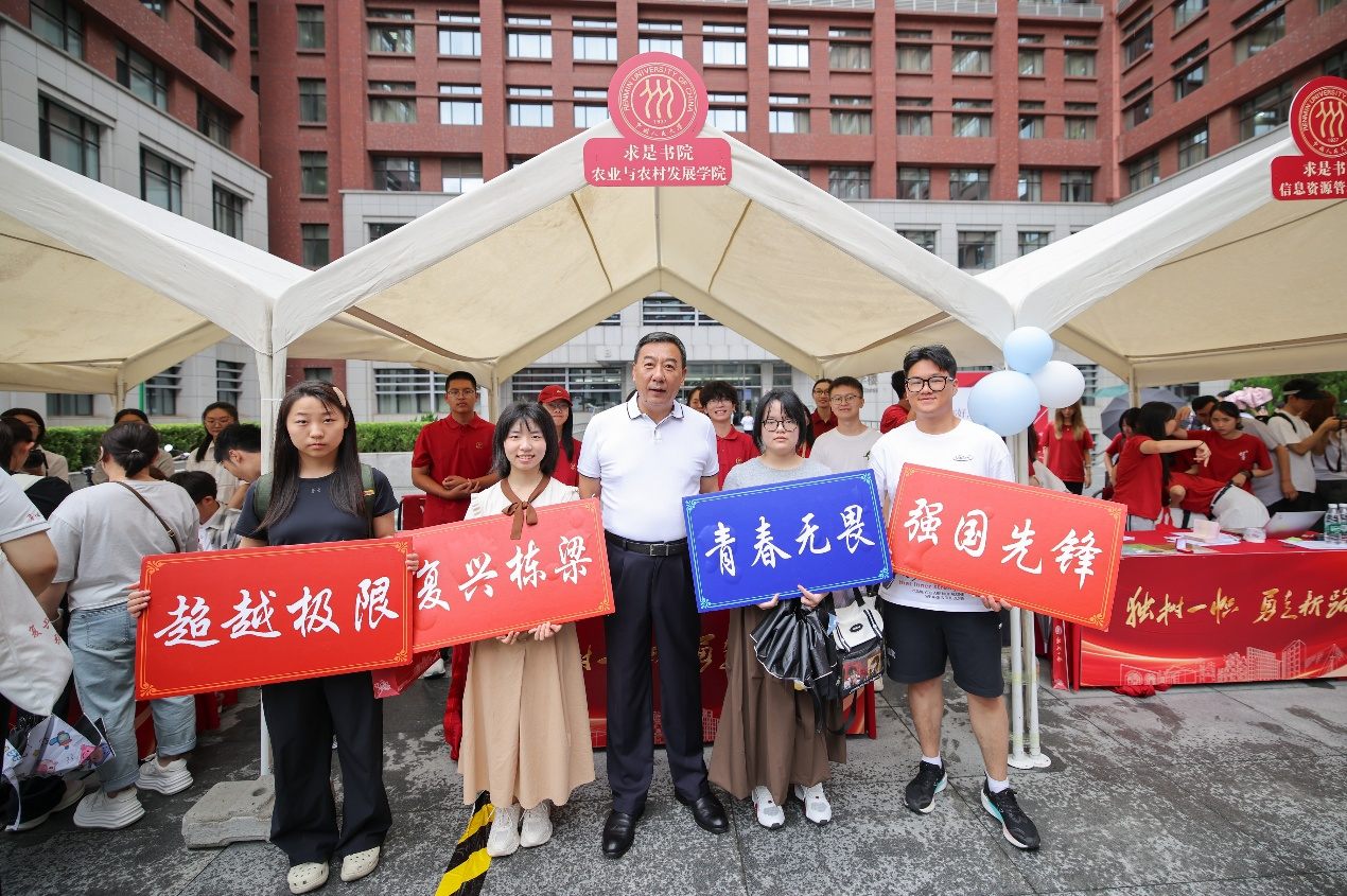 学院领导班子成员以及孔祥智教授、张可心等老师也在迎新一线,与高年级同学一起欢迎新生并热情交谈,传递着学院大家庭的温暖与关怀。