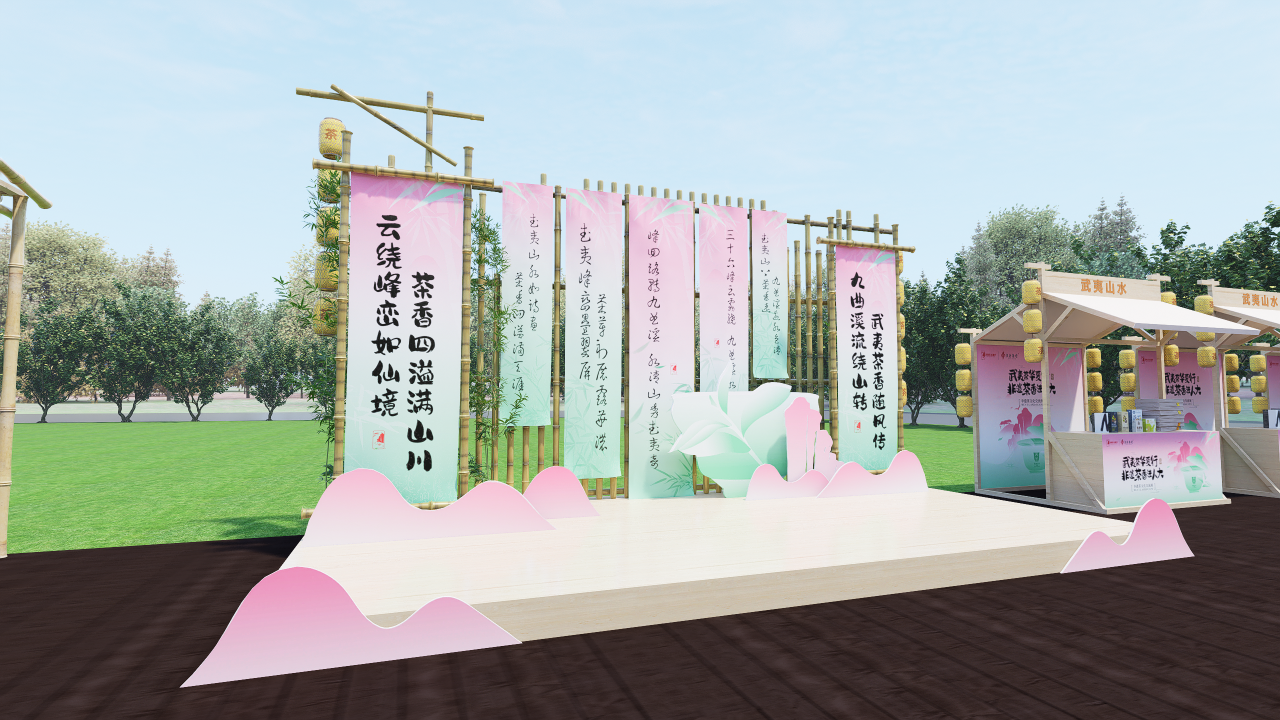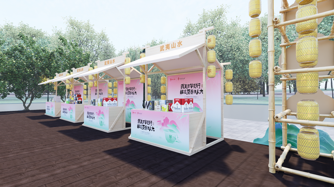 (3)文化交流展设置舞台打卡区,设置打卡互动活动,凡现场打卡5个及以上展位并拍照发布朋友圈,即可至领取“武夷山水·茶空间”茶会区试泡茶一份。活动过程中邀请学校相关学生社团,如古琴社、汉服社等参与现场演出,通过和学生社团的互动,使得整个活动更具清雅风致、也契合年轻人的喜好,仿佛有庭院小聚雅集的自适之感。