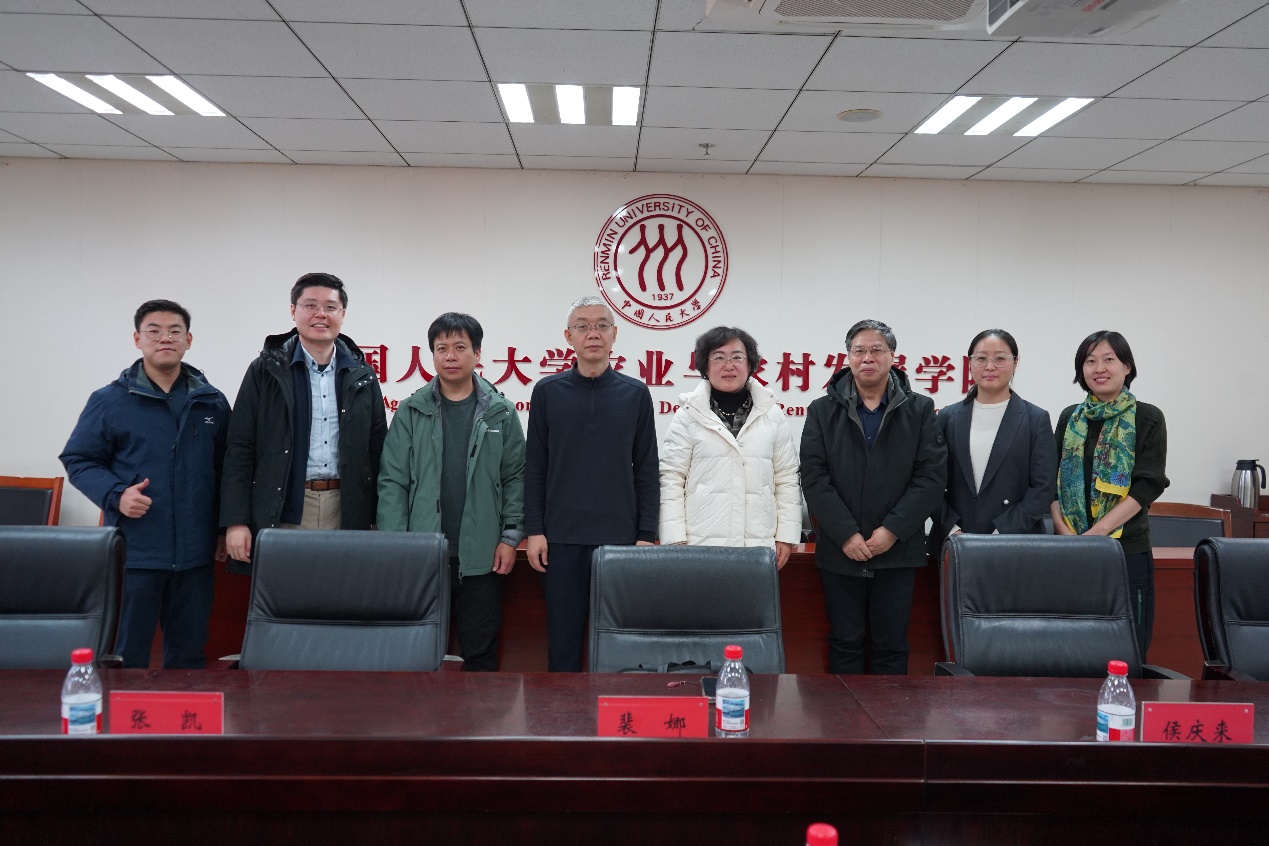 教授曾寅初、教授仝志辉及和平与发展学院助理教授王丽媛参加活动。双方围绕产业振兴、工作指引等内容进行深入探讨交流。会议由学院副院长陈威主持。