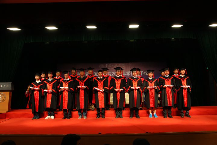 随后,学院副院长孔祥智教授宣读了《高清av 学位委员会关于授予硕士、学士学位的决定》。高清av 今年共有22人获得博士学位,232人获得硕士学位,51人获得学士学位。出席典礼的三十三名学院老师先后为硕士专业学位获得者、硕士学术学位获得者、学士学位获得者颁发学位证书,并把象征毕业的学位帽上的流苏拨到左边。